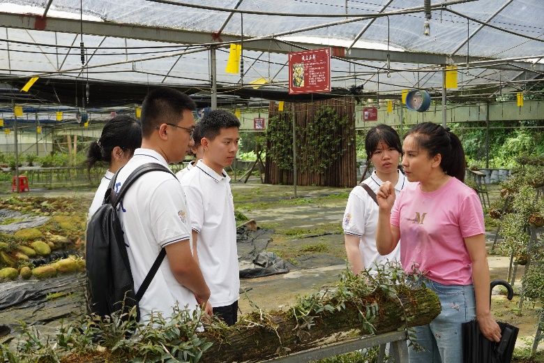 “铁皮石斛被列为‘中华九大仙草之首’,素有‘药中黄金’之美称。我们的铁皮石斛不仅品质优良,而且市场前景广阔。”七彩农场负责人向实践队介绍道。7月11日,实践队走进融水七彩农场,实地调研特色种植业与康养旅游相融合的旅游发展模式。据了解,七彩农场是集种植、休闲、度假、娱乐于一体的多功能、综合性原生态农场,也是柳州最大的铁皮石斛种植基地。七彩农场负责人向实践队介绍了农场在发展特色农业方面取得的成果、经验以及面临的现实困境。参观期间,实践队成员与文旅局工作人员、农场负责人就如何通过特色农业带动当地旅游业发展、帮助农民增收进行了深入探讨。
