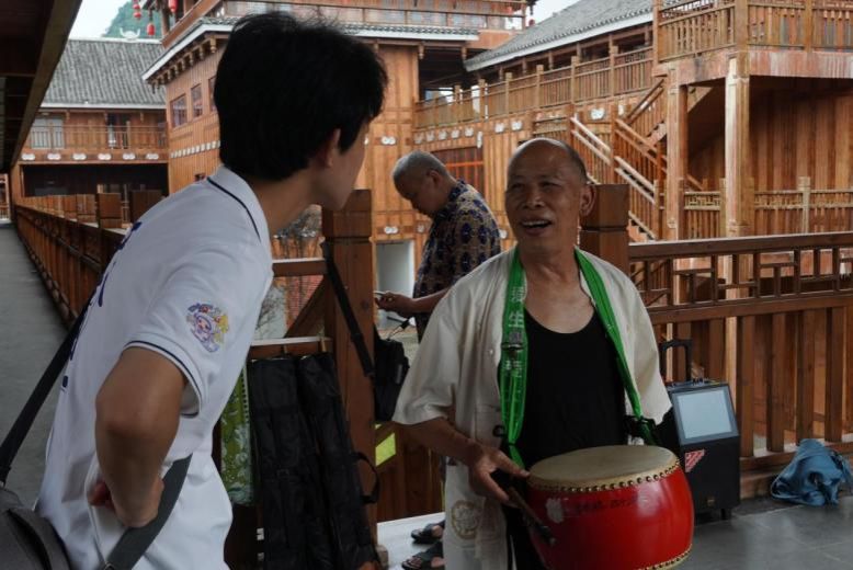 7月12日,实践队一行前往融水风情苗乡开展调研。据了解,融水风情苗乡是由柳州市文旅集团投资打造的文旅项目,也是柳州市落实乡村振兴战略的重点项目。在风情苗乡,寻着优美的音乐声,实践队员们找到了正在排练的民间芦笙舞蹈艺术团,亲身体验了芦笙这一苗族传统非遗文化,并与文旅局工作人员、景区负责人就如何通过文化旅游带动当地相关产业发展进行了深入探讨。