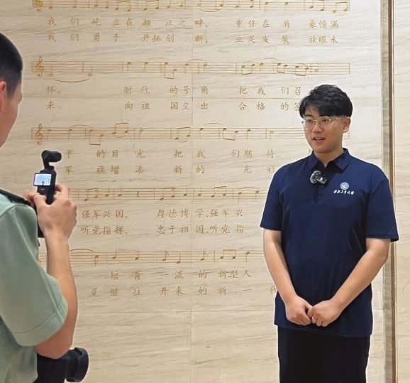 为深入学习贯彻习近平总书记来哈尔滨工程大学考察时关于发扬“哈军工”优良传统的重要指示精神,赓续红色血脉,凝聚奋进力量,7月18日至19日,马克思主义学院李世蓁、张淼煜赴长沙参与中国人民解放军国防科技大学2025年马克思主义学员论坛,在“大力传承弘扬‘哈军工’精神”八校学子联合演讲中铿锵发声,并接受国防科技大学电视台以及湖南教育电视台的采访。