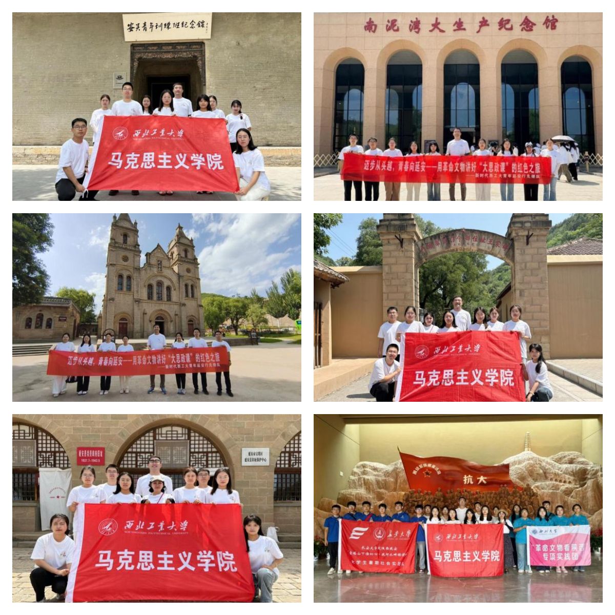 为深入贯彻落实党的二十大精神和习近平总书记关于“大思政课”、革命文物工作重要指示批示精神,推动革命文物不断融入“大思政课”建设,发挥革命文物资源的思想政治教育功能,2025年7月11日至16日,西北工业大学马克思主义学院“新时代西工大青年延安行”实践队赴咸阳、铜川、延安等地开展“新时代青年延安行革命文物融入‘大思政课’社会实践活动”。实践队一行10人,由指导老师杜轶伦带队,探访革命旧址12处、纪念馆7处,开展特色实践活动6次,学习专题思政课7场、集中学习习近平总书记重要讲话精神1次,在历史与现实、理论与实践的双向互动中铭记百年光辉党史,淬炼理想信念。