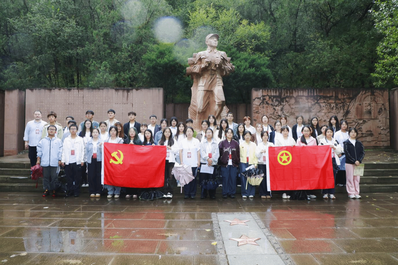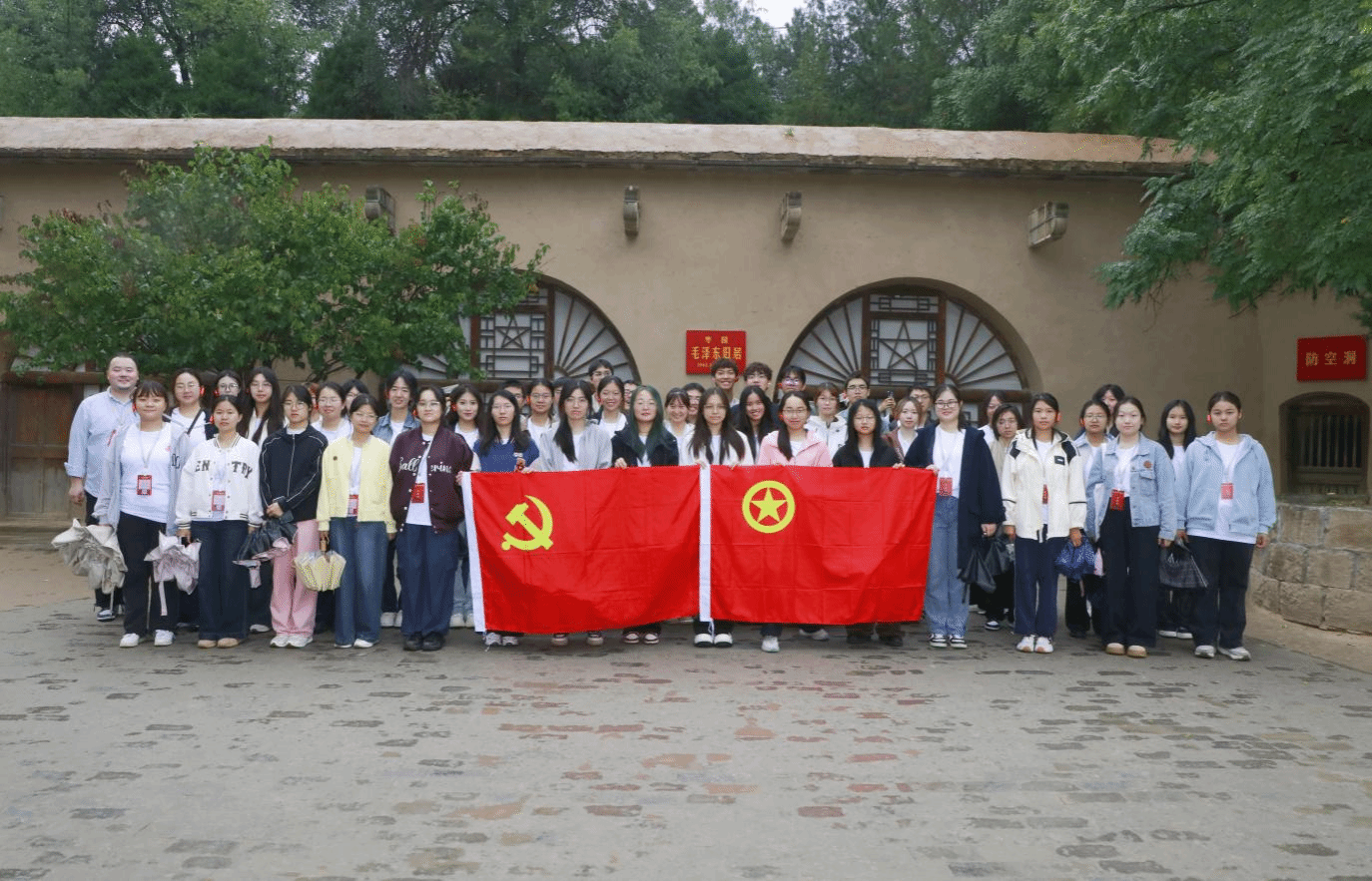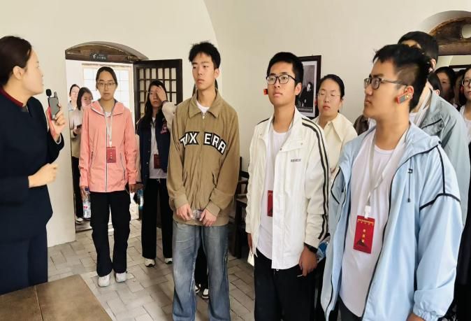 下午,实践队走进枣园革命旧址,齐声诵读《为人民服务》,学生党员在党旗下重温入党誓词,“人民至上”的理念在沉浸式学习中厚植于心。