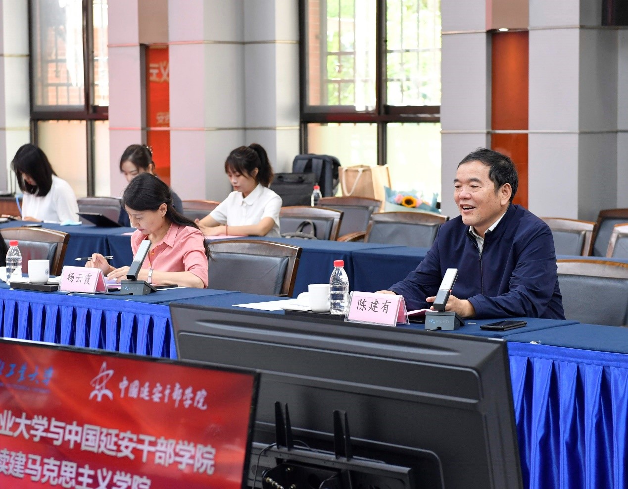 随后,陈建有代表学校致辞。他指出,当前,国际形势继续发生深刻复杂变化,百年未有之大变局和世纪疫情相互交织,世界进入新的动荡变革期,大国博弈和地区之间的冲突不断升级,西方从未放弃与我争夺话语、争夺人心、争夺青年。马克思主义学院肩负着学习研究宣传马克思主义、推进马克思主义中国化时代化大众化、培养中国特色社会主义事业合格建设者和可靠接班人的重大使命。西北工业大学历来高度重视马克思主义理论的宣传教育,始终把马克思主义学院建设和马克思理论学科建设放在战略高度。面对新形势新任务新挑战,续建马克思主义学院是进一步充分调动双方的力量和资源,建设“大课堂”、搭建“大平台”、建好“大师资”,全面推进“大思政课”建设的重要举措,是落实学校“四个行动计划”的具体实践。希望我们双方能继续发挥学科建设、学位教育、人才队伍、干部挂职、红色资源、延安精神研究等优势,进一步提升我校马克思主义学院在人才培养、师资队伍建设、科学研究、社会服务等方面的能力水平,为培养具有家国情怀、追求卓越、引领未来的领军人才贡献力量。