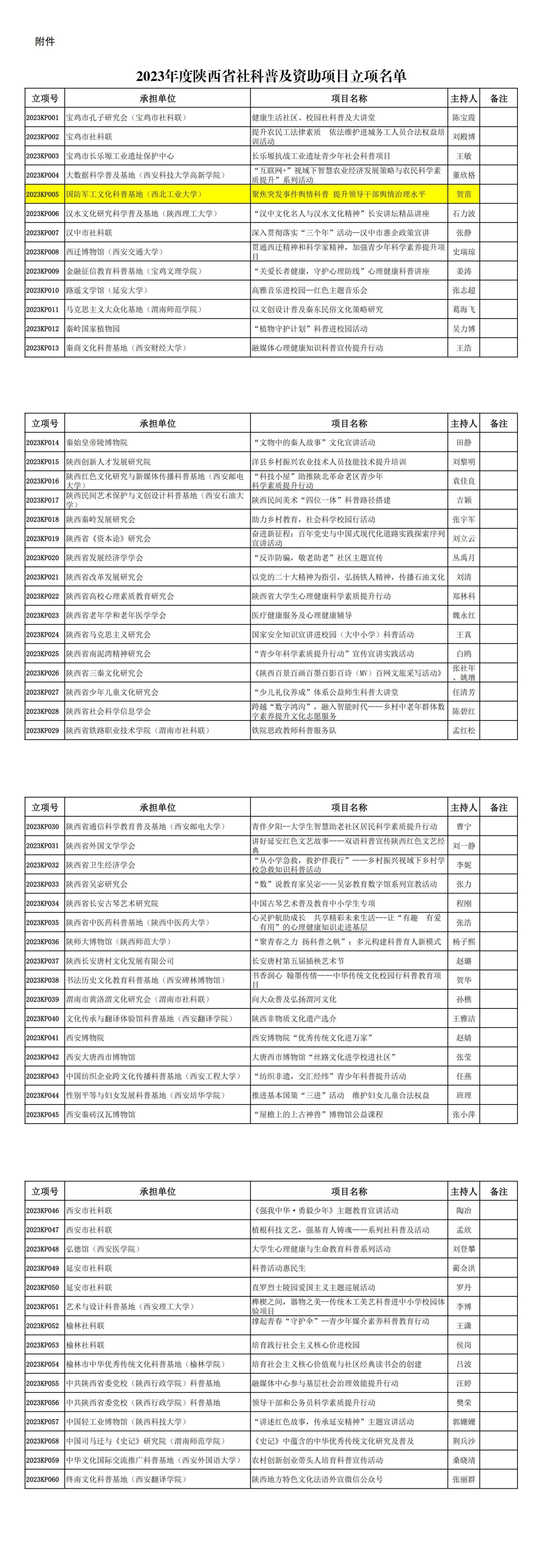 为深入学习贯彻党的二十大精神,贯彻落实《陕西省贯彻〈全民科学素质行动规划纲要(2021—2035)〉实施方案》,推动社科普及工作高质量发展,我院贺苗副教授依托国防军工文化科普基地申报的《聚焦突发事件舆情科普 提升领导干部舆情治理水平》成功获批2023年度陕西省社科普及资助项目。