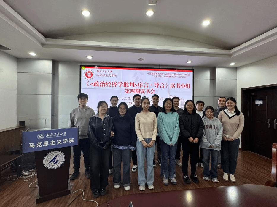2025年3月24日下午,西北工业大学“《政治经济学批判》序言·导言”读书小组第四期读书会在马克思主义学院208会议室如期举行。本次活动由王心彤同学担任主持,读书小组全体成员参加,聂阳、齐承水两位教师全程指导。本次读书活动紧扣“深读原著·解码原理·回应现实”的核心理念,设置学术汇报、自由提问与主题研讨三大环节,引导师生共同探讨经典著作在当代社会的实践坐标与思想光芒。