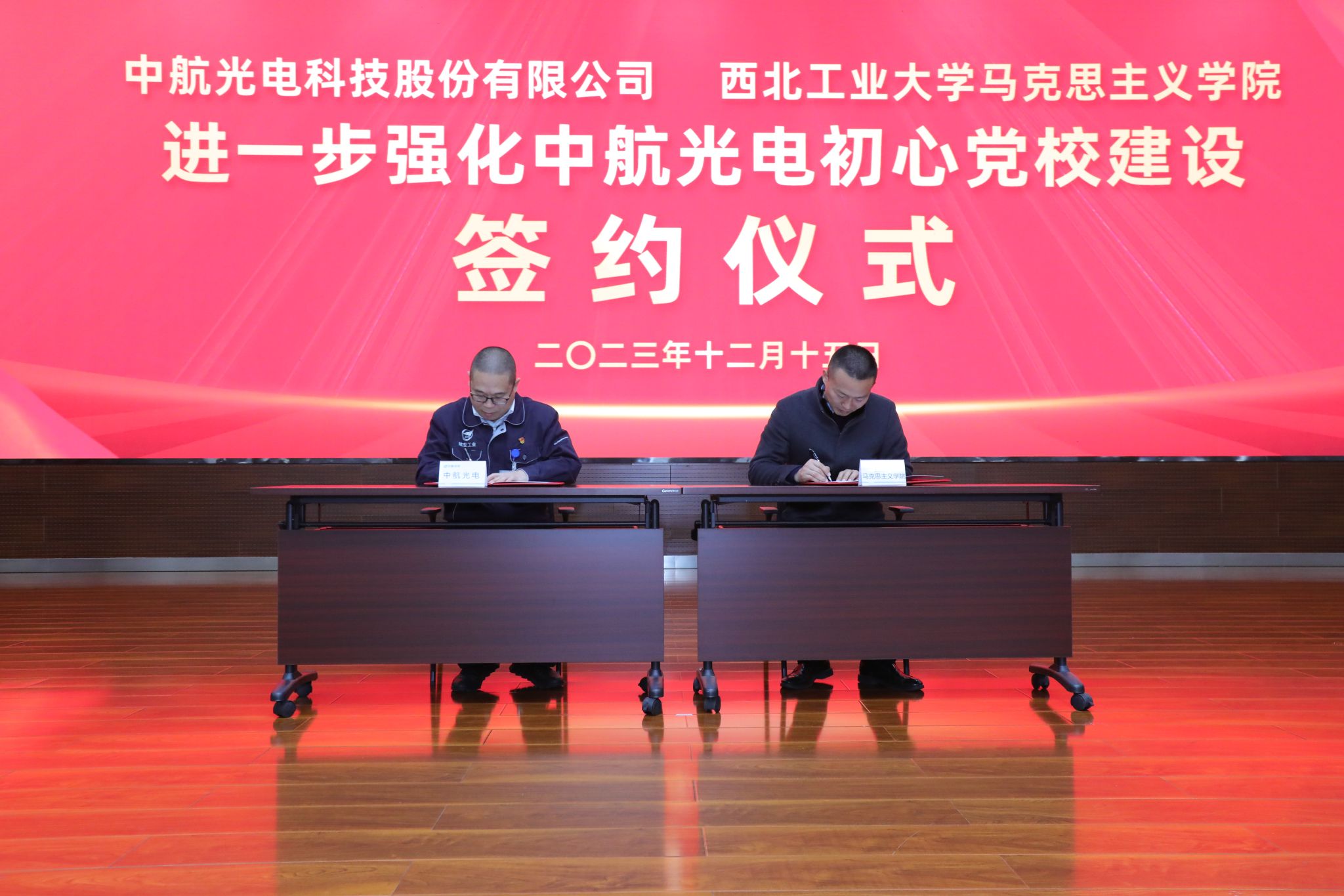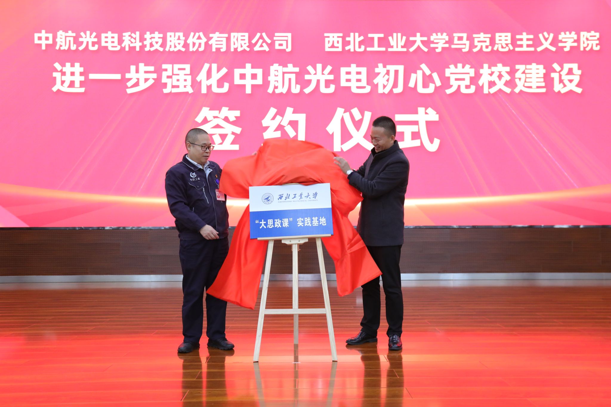 李森、蒲传新共同签署中航光电科技股份有限公司与我校马克思主义学院进一步强化中航光电初心党校建设合作协议并为西北工业大学“大思政课”实践基地揭牌。