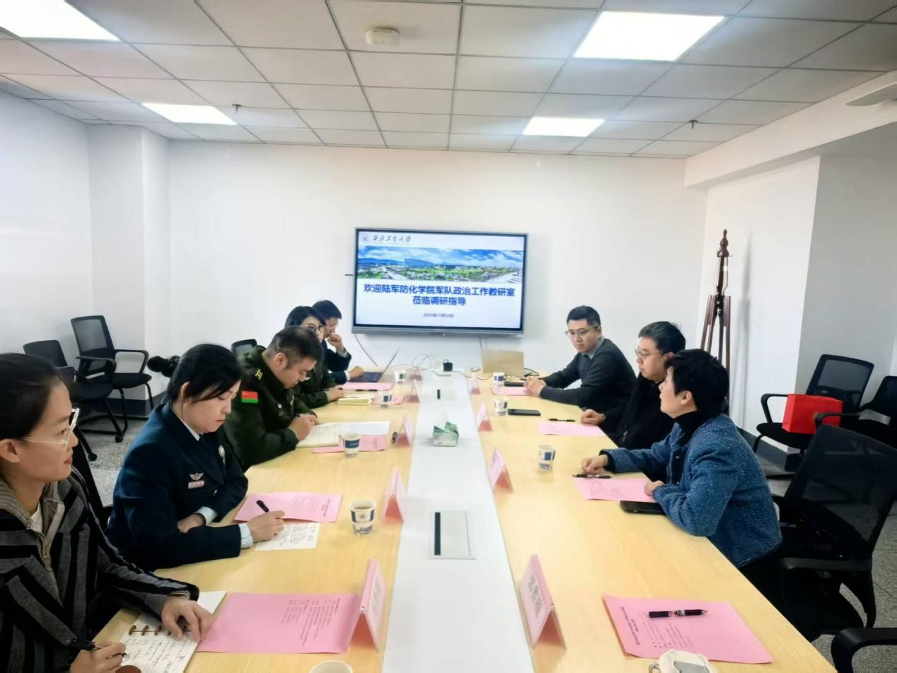 11月23日上午,陆军防化学院某部教研室主任仁青邓珠一行来我院调研。学院党委书记王彦革,副院长贺苗,党委副书记耿云辉,办公室主任郭雅楠参加了此次会议。会议由王彦革主持。
