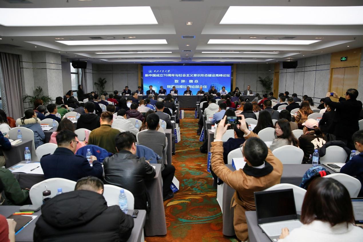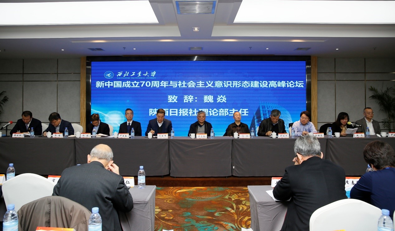 2019年12月13日,“新中国成立70周年与社会主义意识形态建设高峰论坛”在陕西省西安市翱翔国际会议中心隆重召开。西北工业大学党委副书记陈建有,党委常委、党委宣传部部长杨晓出席了会议。来自中国社会科学院、中央党校、南京大学、中山大学、四川大学、北京师范大学、上海师范大学等全国高校和科研机构,以及中国社会科学杂志社、光明日报社、中国社会科学报等杂志和媒体的150多位专家学者参会。本次论坛由西北工业大学马克思主义学院、《科学社会主义》杂志社、《西北工业大学学报(社科版)》杂志社共同主办。