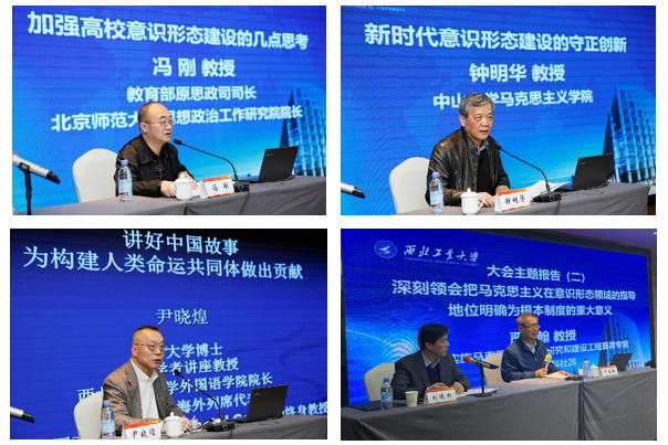 随后,北京师范大学冯刚教授、中山大学钟明华教授、西北工业大学尹晓煌教授分别作了“加强高校意识形态建设的几点思考”“新时代意识形态建设的守正创新”“讲好中国故事,为构建人类命运共同体做贡献”的主旨报告。
