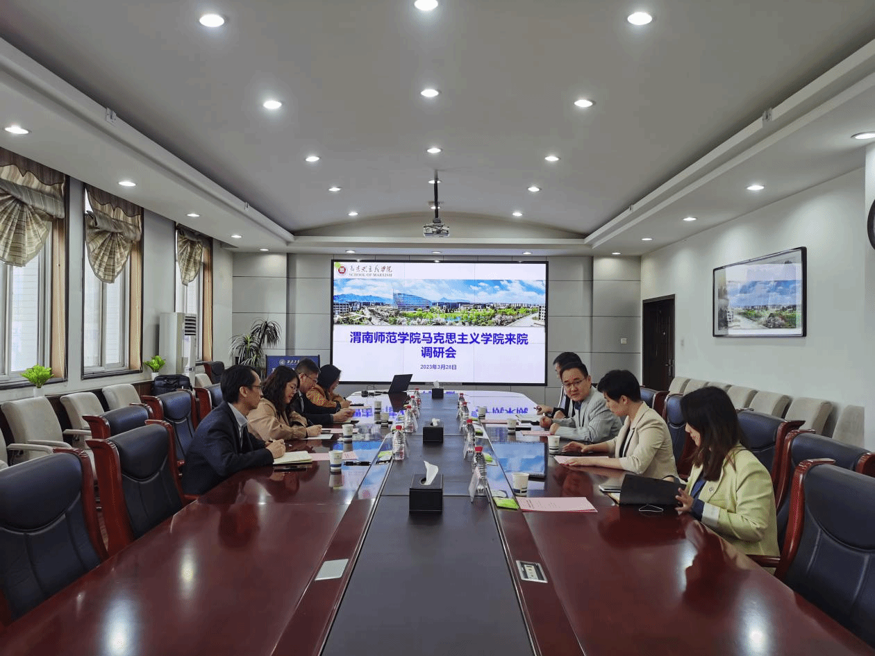 3月28日下午,渭南师范学院马克思主义学院院长张萍、党总支副书记肖飞、副院长单剑锋、教师周菊芳等来我院调研,学院副院长张云龙、贺苗,院长助理马军、公共课教学秘书张笑男等参加了调研会。会议由张云龙主持。