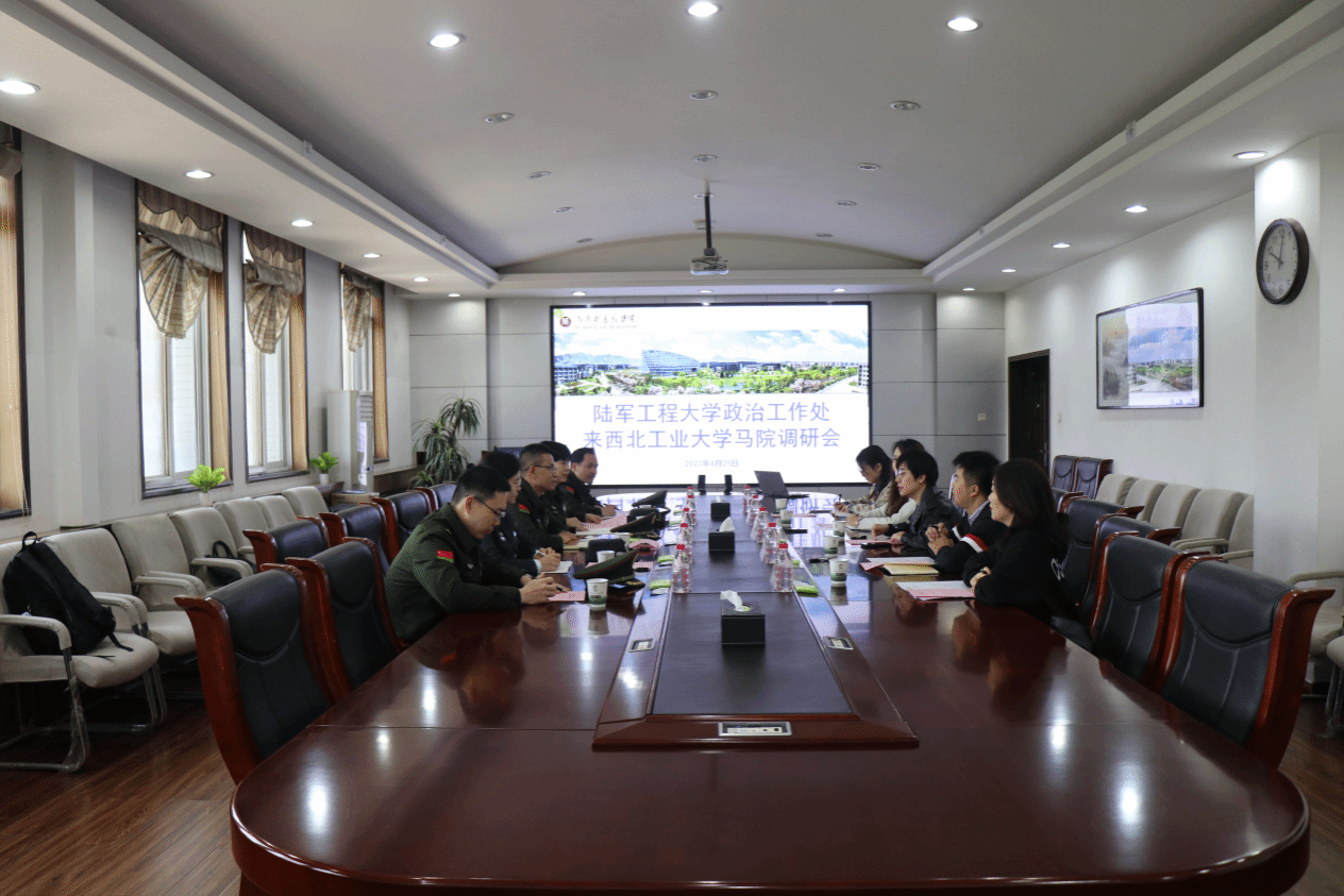 吴清江对学院的热情招待表示感谢,并就陆军工程大学政治工作处的具体情况、主要构成、政治理论教学等方面作详细介绍。他强调,思想政治教育部分是深入贯彻新时代政治建军方略的重要体现,强国必先强军,强军必先强心,强心重在铸魂。他表示,此次来访在学院学科建设、思政课教学改革、教学科研团队建设、虚拟仿真实验室建设等方面获益匪浅,并希望招聘西北工业大学马克思主义学院的研究生。