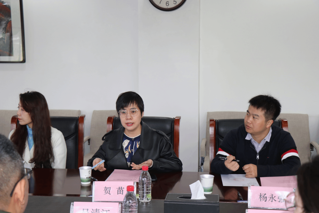 贺苗代表马克思主义学院对陆军工程大学政治工作处的来访表示欢迎,并就学院概况、研究机构、师资队伍、思政课建设、公共课教学、陕西省重点舆情信息研究中心建设、虚拟仿真实验室建设等情况作详细介绍,同时结合自己思政课教学实践,介绍了思政课教学及其改革、一流课程建设尤其是虚拟仿真课程的建设情况和经验。她表示,学校党委对马克思主义学院的建设高度重视,对思政课教学、马学科发展、学院师资队伍建设、高层次人才引进、“大思政课”建设上大力支持,学院上下积极落实“集全校之力办好马克思主义学院”的决策部署,并指出学院后续发展思路、建设规划以及思政课专项改革重点任务举措。