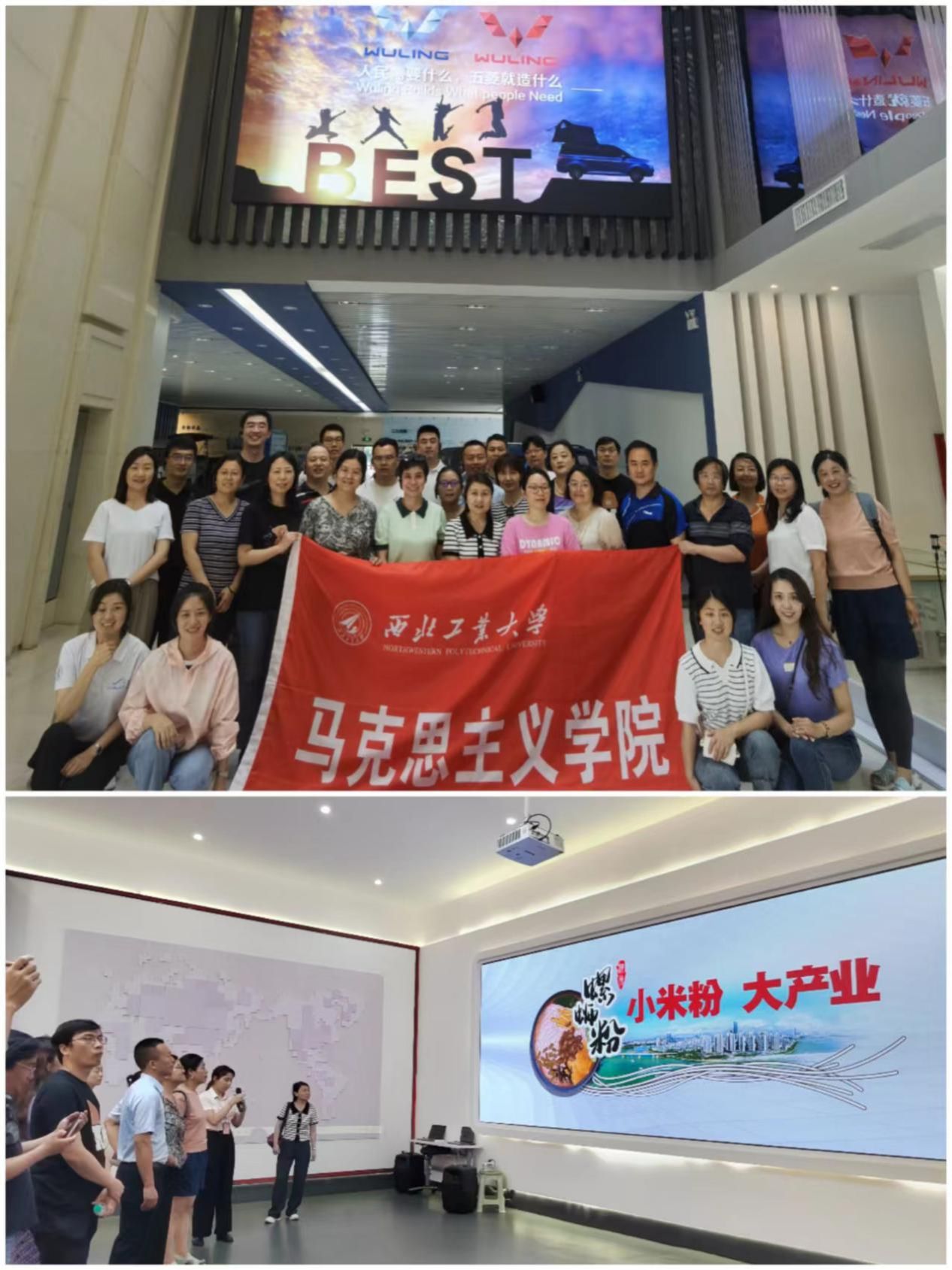 本次实践研学的最后一天,学院教师前往柳州市参观了上汽通用五菱宝骏基地、善元螺蛳粉企业和柳州工业博物馆,了解民族工业、企业的发展崛起的历程,领悟“工匠精神”。尤其是五菱汽车,始终践行“人民需要什么,我们就造什么”的价值追求;在疫情期间联合供应商通过改建生产线的方式转产口罩,从提出自产口罩的想法,到第一批产口罩交付仅用时3天,充分体现了“艰苦创业,自强不息”的企业精神和“大企大厂”的社会责任与担当。