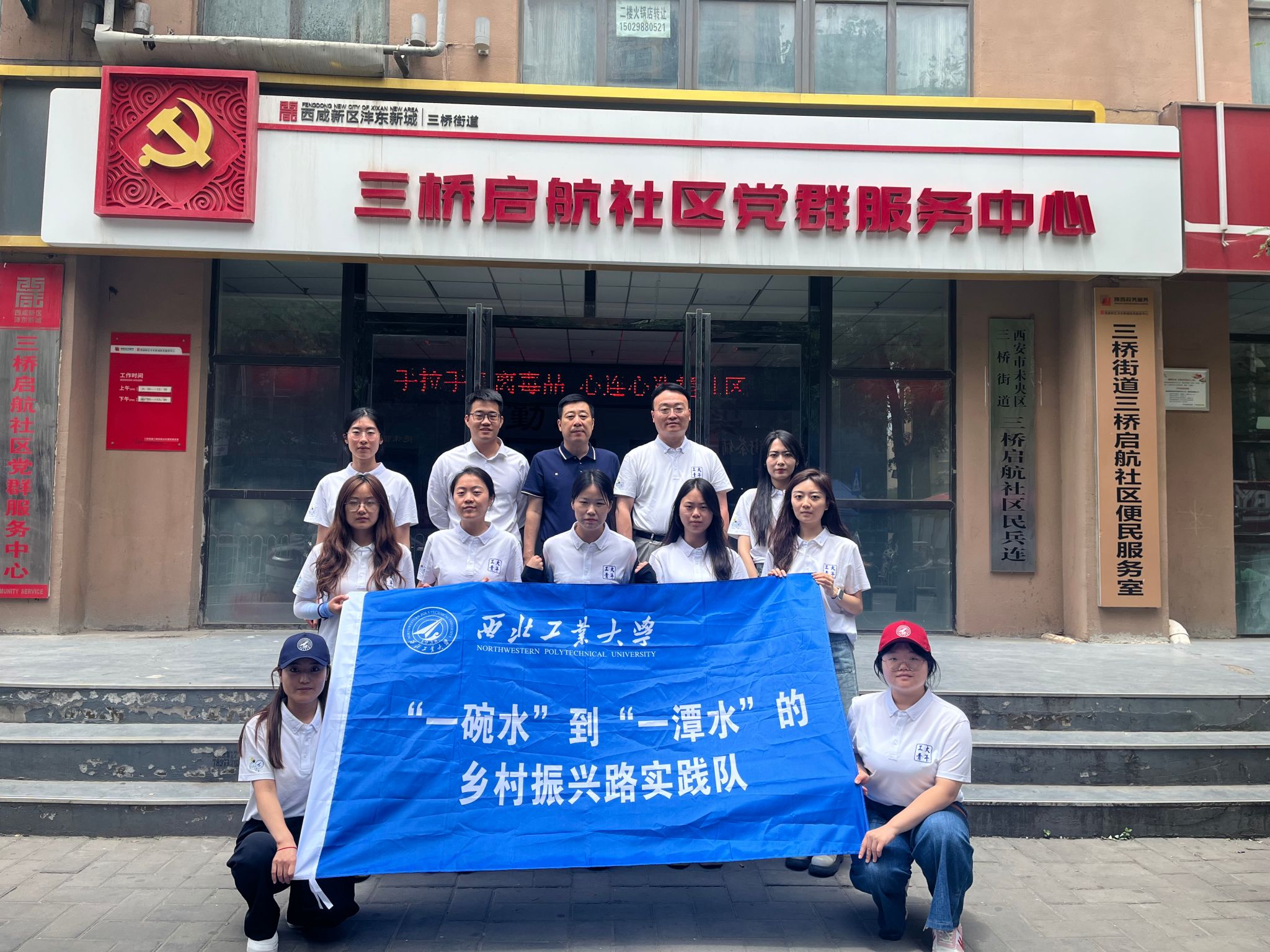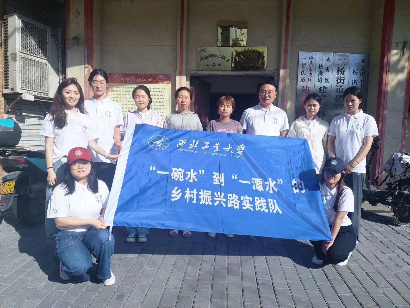 为积极响应乡村振兴战略,深入学习新型农村集体经济发展经验, 2023年7月6日,西北工业大学马克思主义学院“‘一碗水’到‘一潭水’的乡村振兴路”实践队在房小捷老师的带领下前往西安市未央区三桥街道,调研走访了三桥启航社区和建章路社区。
