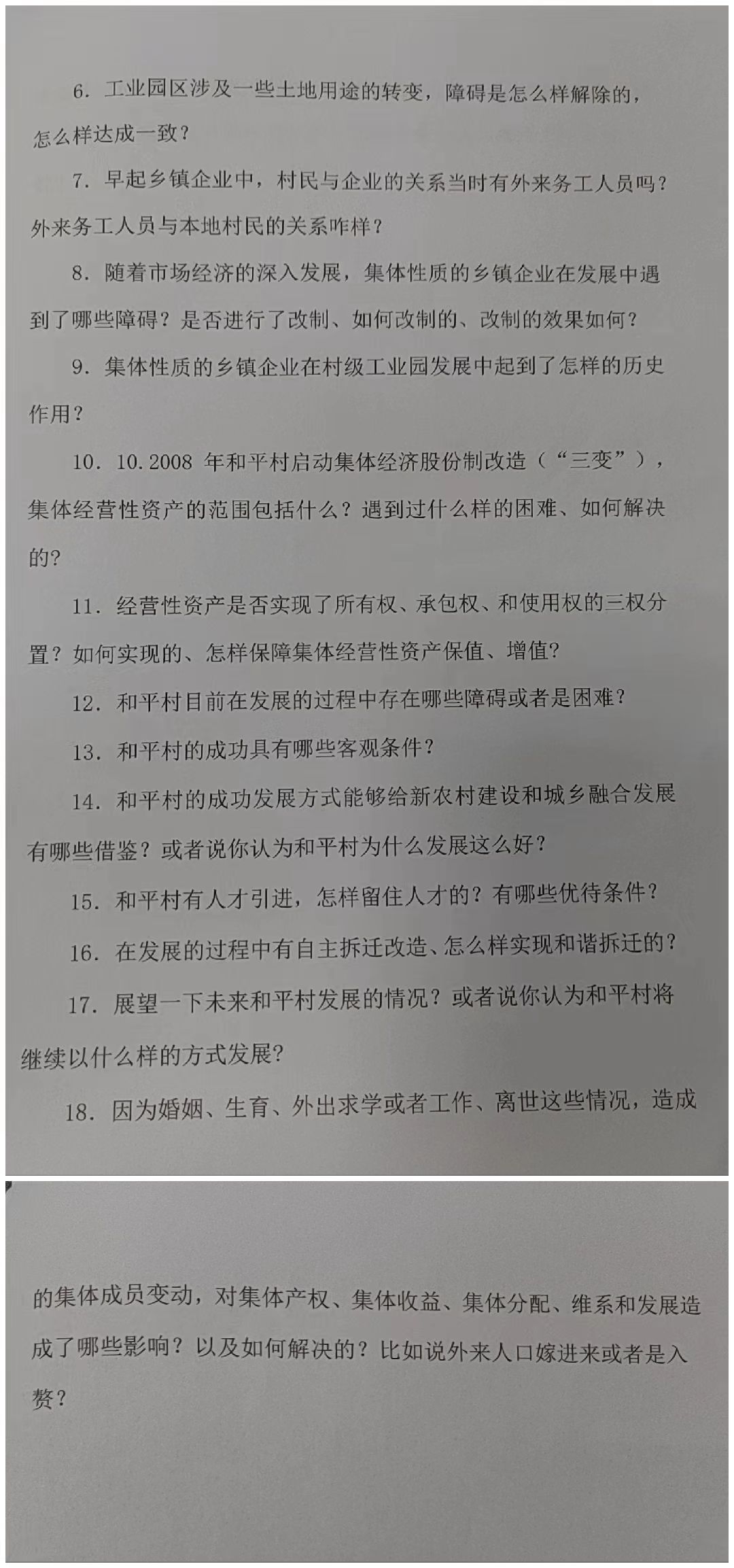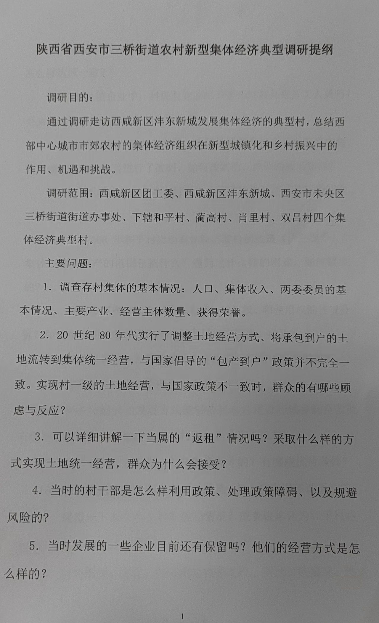 在实践活动开始前,实践队成员在充分学习实践所需理论知识、了解实践地基本情况的基础上,拟定了“三桥街道农村新型经济典型调研提纲”。该提纲主要围绕市郊农村集体经济组织“如何实现土地统一经营?”、“如何发展集体性质的乡镇企业?”、“如何协调外来务工人口与本地村民的关系?”等一系列问题展开,旨在深入了解西部中心城市市郊农村集体经济组织在新型城镇化和乡村振兴中的作用、机遇和挑战。