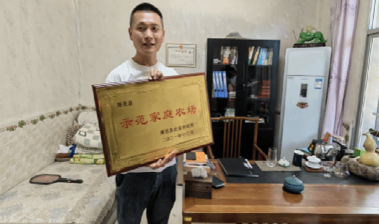 图为荣臻家庭农场获周至县示范家庭农场证书