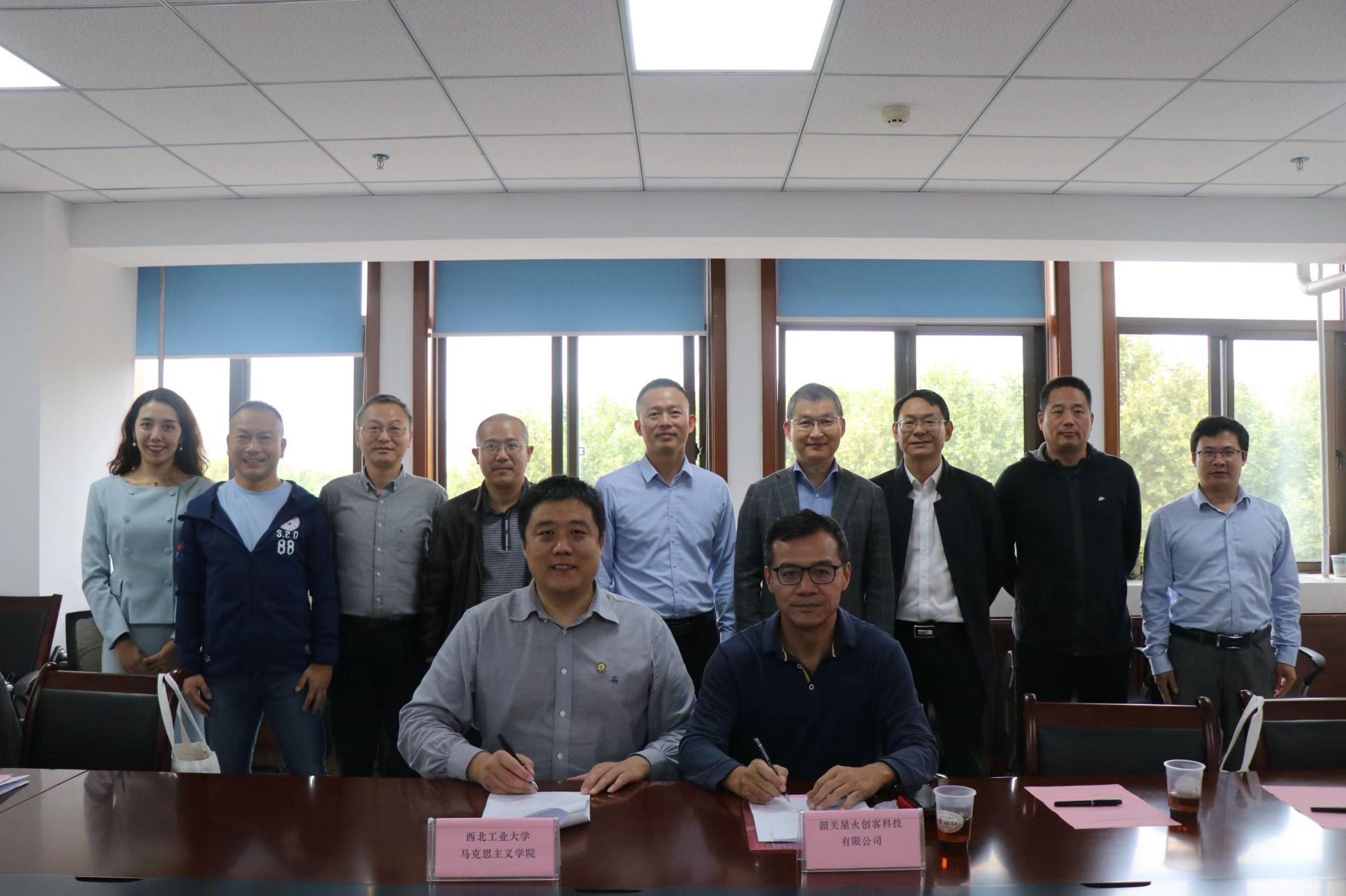 正值喜迎建校八十五周年之际,广大校友返校“回家”之时。10月13日下午,马克思主义学院与韶关星火创客科技有限公司共建的西北工业大学大学生社会实践基地签约仪式在友谊校区勇字楼702举行,韶关星火创客科技有限公司代表、校友刘宏、北京校友会秘书长周国华,校友沈飚、孙志强、谢小钢、贺炜、唐樟春、周桓等一行十余人来学院调研并签约,西工大校友会副秘书长孙武斌、马克思主义学院党委书记蒲传新、党委副书记李刚、办公室主任郭雅楠参加了本次签约会。会议由李刚主持。