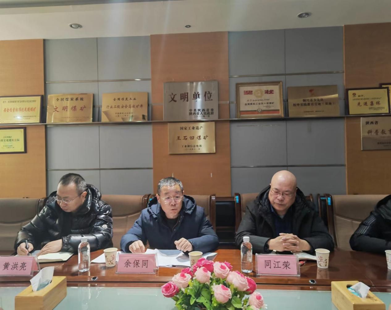 会上,铜川市印台区政府及王石凹旅游公司对学院一行的到来表示热烈欢迎。双方首先观看了王石凹煤矿工业遗址、西北工业大学和马克思主义学院宣传片。王石凹旅游公司财务总监余保同对王石凹煤矿工业遗址做了简要介绍。他表示,王石凹煤矿是国家“一五”期间156个重点工程建设项目之一,由苏联列宁格勒设计院设计建设。半个多世纪以来,王石凹人秉承“一不等,二不靠,三不埋怨,四不叫,埋头苦干往上搞”的企业精神,成为了共和国煤矿工业的“长子”。2014年王石凹煤矿改制,建成了王石凹煤矿工业遗址;希望携手高校,共同将王石凹煤矿遗址打造成开展思政教育的重要基地。马克思主义学院党委书记蒲传新代表学院发言时表示,西北工业大学和王石凹煤矿有着非常深厚的历史渊源,希望学院今后能有机会和王石凹煤矿工业遗址共同开展“大思政课”建设、师生研学基地、科学研究、理论宣讲等方面合作。