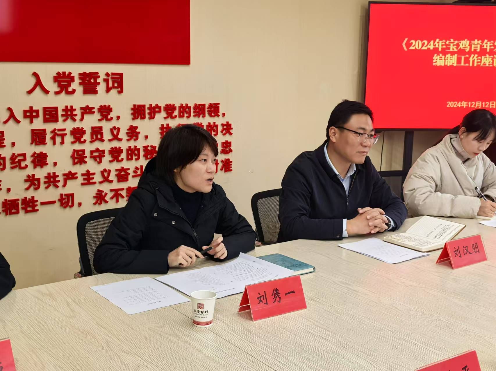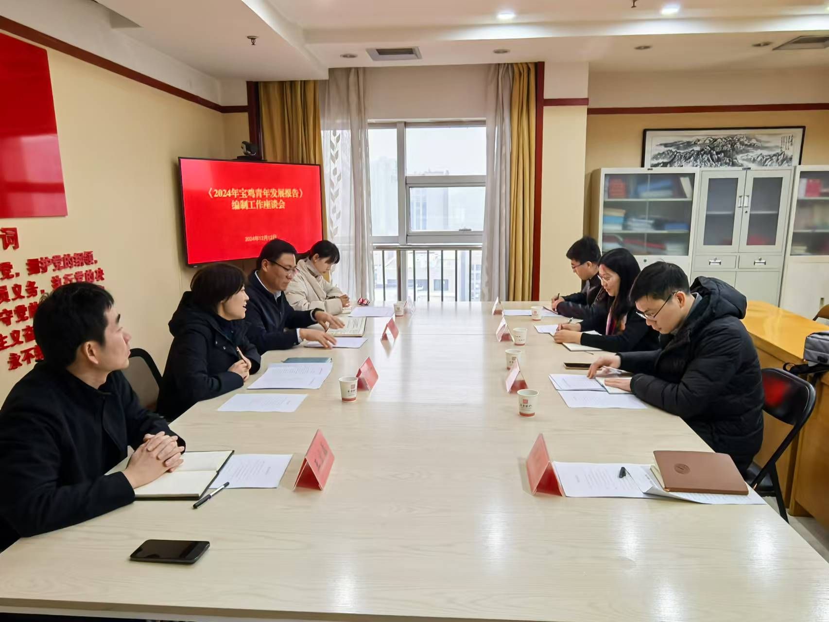 为增强青年发展工作的实效性,为党政青年工作决策和社会治理创新提供可行性、针对性参考意见,同时为深化青年发展城市建设、纵深实施中长期青年发展规划提供实证依据,宝鸡市发布《2024宝鸡青年发展报告》编制项目。2024年12月12日,陕西青年发展规划研究中心与宝鸡团市委进行座谈,共同商讨《2024宝鸡青年发展报告》项目承接以及编制细节。陕西青年发展规划研究中心主任、西北工业大学马克思主义学院副教授宫淑燕、副教授陈诚平、教师折军、博士研究生李燕南参加座谈。