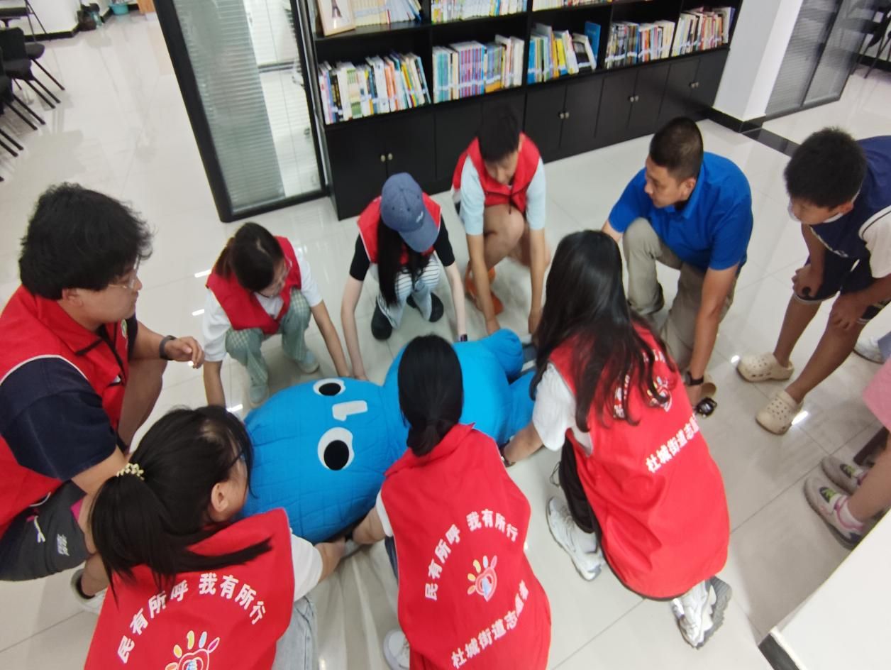 7月7日,在实践队指导老师王换的带领下,实践队员一同走进西安市雁塔区杜城街道金地西沣公元二期社区,与社区工作人员、其他兄弟高校志愿者共同开启“暑托拾光+”志愿服务活动。上午,实践队员全程护航社区儿童在奥斯篮球少儿运动中心开展篮球基础训练与体适能训练,配合教练维持现场秩序,护佑孩子们安全,一起学习基础运球与投篮技巧,现场氛围热烈融洽。下午,“金光急救小课堂”生动开讲,实践队员与孩子们共同学习了心脏骤停、气道梗阻的识别与处理方法以及外伤应急处理技巧,重点掌握了心肺复苏术、AED使用方法、海姆立克急救法以及创伤包扎技术,并且帮助孩子们分组完成应急处置的全流程演练,以体验式、场景式互动切实提高社区儿童的风险识别能力与自救互救能力。课后,实践队员针对不同学龄段需求,提供了个性化课业答疑与学习方法指导。