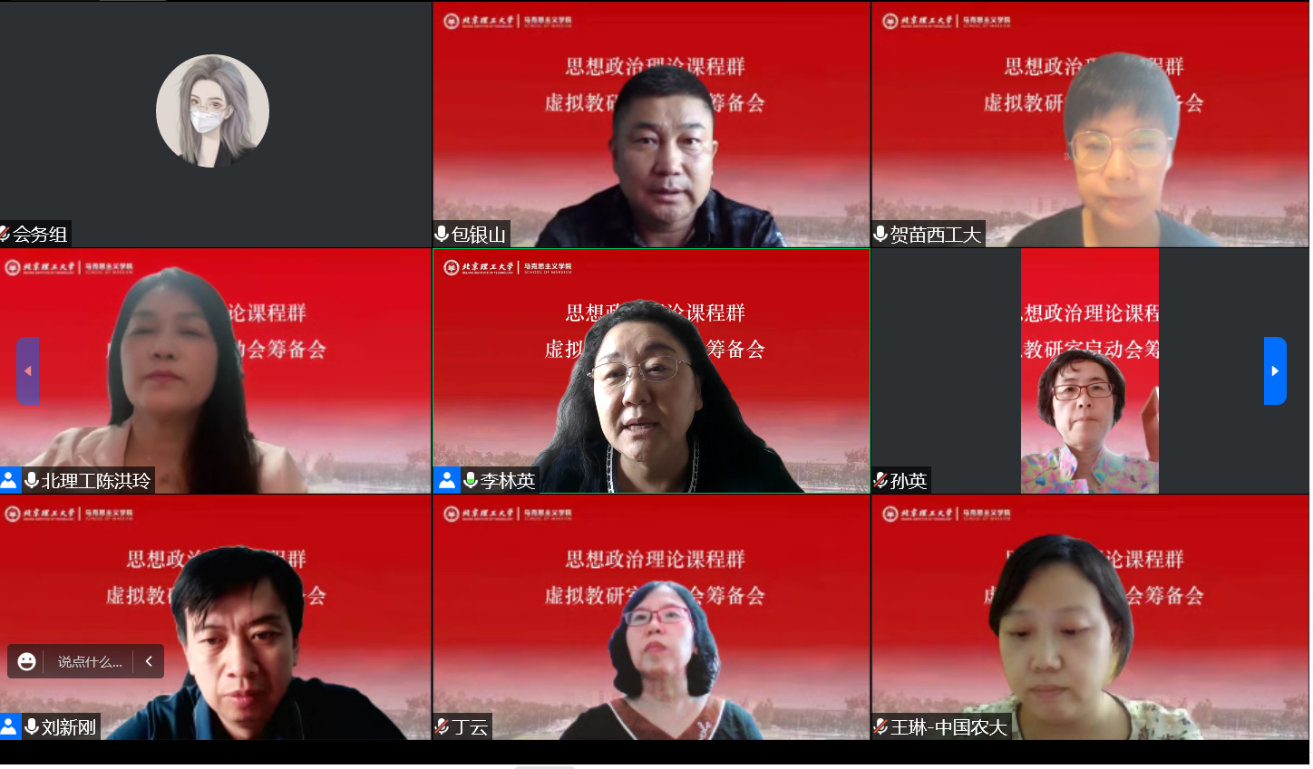 为贯彻落实“十四五”教育发展规划有关部署,加强信息化时代下新型基层教学组织建设,教育部高等教育司于2020年启动全国范围内虚拟教研室试点建设工作。日前,由北京理工大学马克思主义学院牵头,中央民族大学马克思主义学院、中国农业大学马克思主义学院、西北工业大学马克思主义学院、北京工业大学马克思主义学院与内蒙古财经大学马克思主义学院组成的思想政治理论课程群虚拟教研室联盟成功申报,入选全国第一批思想政治理论课程虚拟教研室试点单位。2022年8月11日下午,北京理工大学马院于腾讯会议云端组织召开思想政治理论课程群虚拟教研室启动会筹备会。西北工业大学马院副院长贺苗参与了本次线上会议。