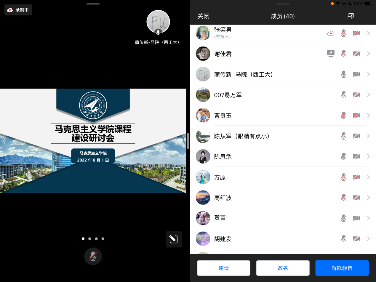 为深入贯彻落实习近平新时代中国特色社会主义思想课程相关文件要求,8月1日上午,马克思主义学院在线召开《习近平新时代中国特色社会主义思想概论》(以下简称《概论》)课程建设推进会。马院院长杨云霞、党委副书记(主持工作)蒲传新及课题组全体思政课教师参加了会议。会议由马院副院长贺苗主持。