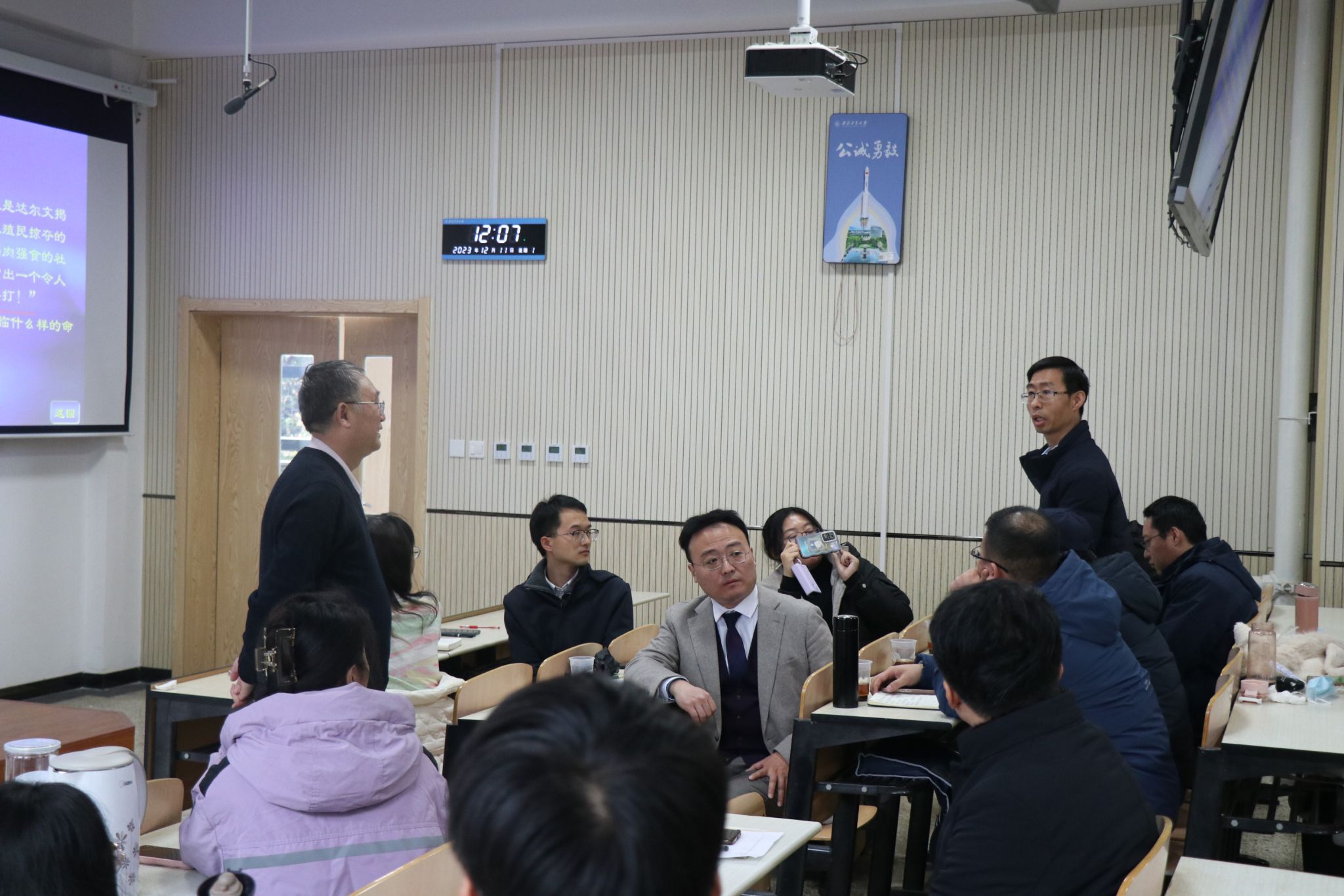 路小可老师作为教育部教育督导,曾深入数十所高校进行思政课建设的指导工作,帮助青年骨干教师的成长。2023年12月11日上午,路小可老师以《世界近代化的浪潮与中华民族的历史命运》为题,向马克思主义学院师生进行了中国近现代史纲要课程专题式示范教学,并就如何提升思政课教学质量、提高马克思主义学院毕业研究生教育教学能力、开展集体备课、运用教育部参考课件等,回答了与会教师的提问。