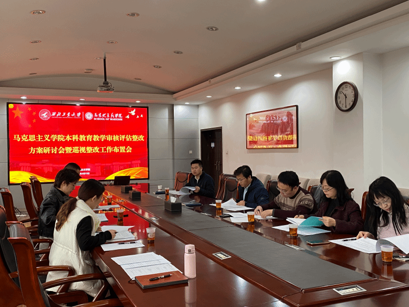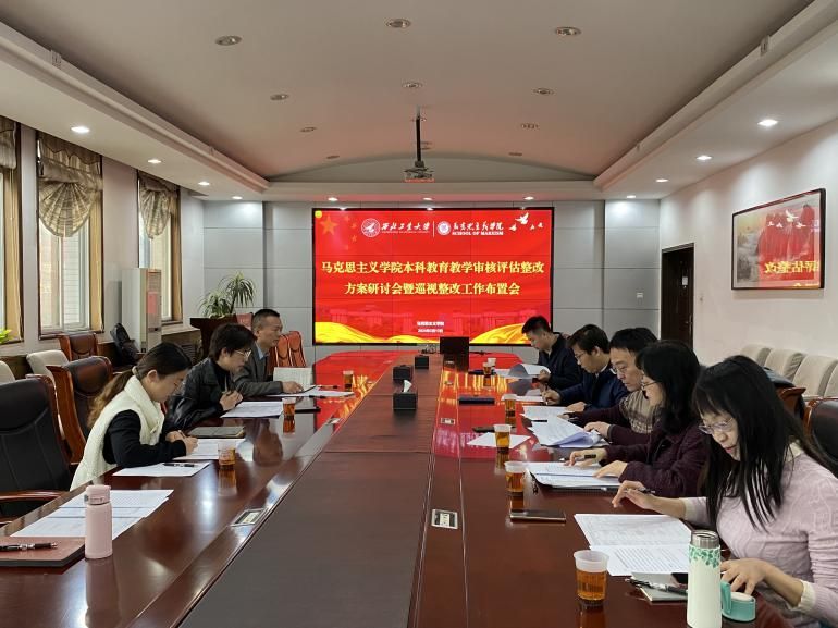 在习近平总书记主持召开学校思想政治理论课教师座谈会五周年来临之际,马克思主义学院以问题为导向,继续加强本科思政课教学质量提升。2024年3月13日上午10:30,学院组织召开本科教育教学审核评估整改方案研讨会暨巡视整改工作布置会。学院党委书记蒲传新、副院长贺苗,马克思主义基本原理系教学主任杨永强、马克思主义中国化研究系教学主任华艳君、中国近现代史基本问题研究系教学主任房小捷、德法与形势政策系主任胡建发、思想政治教育系副教授张淑华,公共课教学秘书张笑男、张懿晨等参加了会议。会议由副院长贺苗主持。