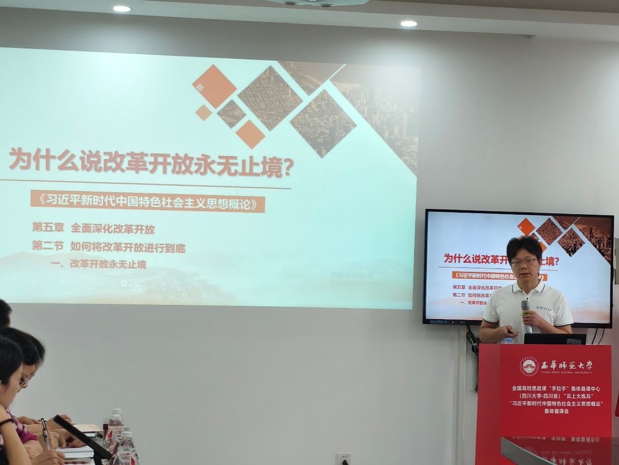 为深入推进习近平新时代中国特色社会主义思想进教材、进课堂、进头脑,切实提升思政课教学质量和水平,6月6日下午,全国高校思政课“手拉手”集体备课中心(四川大学——四川省)“云上大练兵”“习近平新时代中国特色社会主义思想概论”集体备课会在西华师范大学举行。马克思主义学院教师代表参加了此次集体备课会。