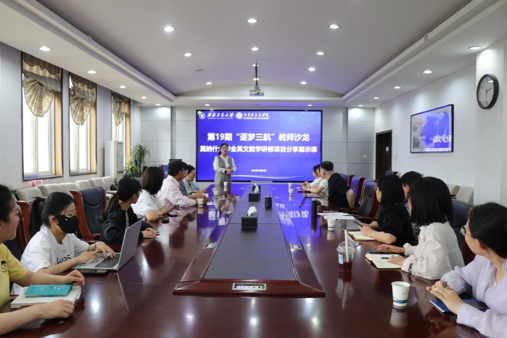 为进一步加强教师互动交流,提升思政课教师全英文授课能力,培养具有国际视野的高素质人才,4月29日,由党委教师工作部主办、马克思主义学院承办的第19期“逐梦三航”教师沙龙——莫纳什大学全英文教学研修项目分享展示课在马克思主义学院楼208会议室顺利举办。本期沙龙由马克思主义学院赵海霞教授、马超副教授作为澳大利亚莫纳什大学全英文教学(EMI)理念与实践研修项目参训教师代表,带来了一场精彩的学习成果展示分享。十余位教师参与沙龙,现场交流互动热烈。