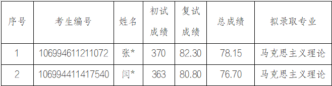 根据《马克思主义学院2024年全国硕士研究生招生调剂工作方案》,现将我院2024年硕士研究生调剂复试拟录取名单公示如下: