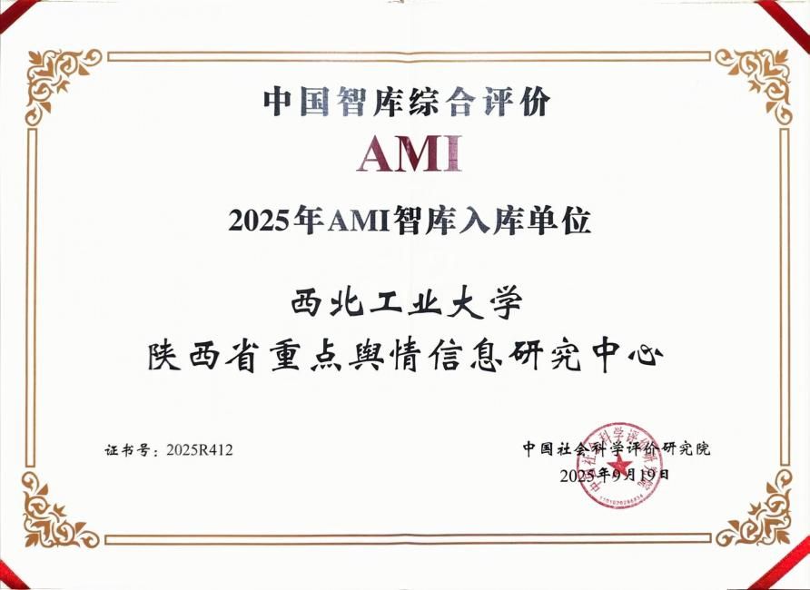 我校陕西省重点舆情信息研究中心入选“中国智库综合评价研究项目(2025)AMI智库入库单位”